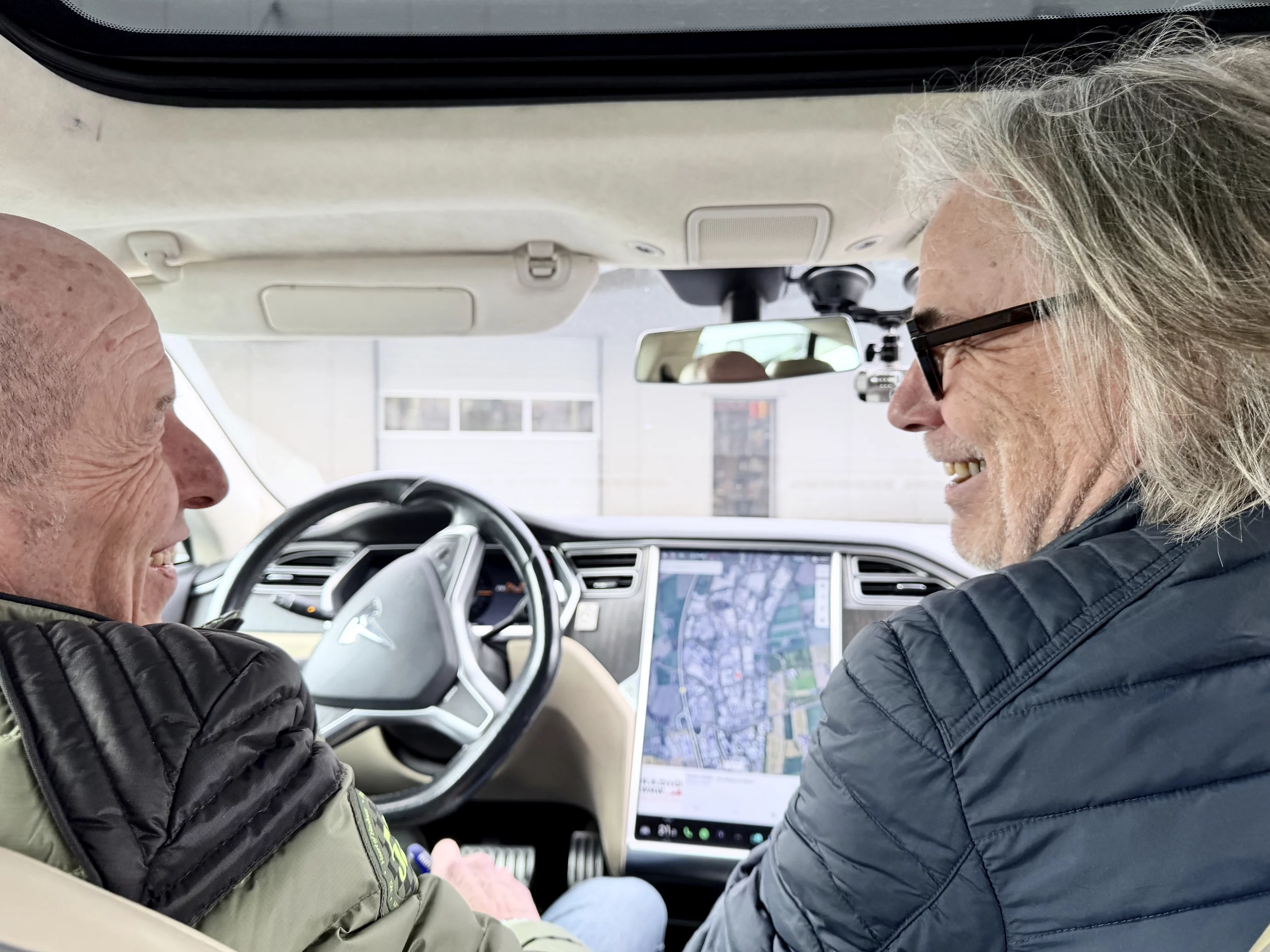 Kirsten hat ihre Sonnenbrille vorsichtshalber trotzdem tief auf die Nase gedrückt und hält sich an der Türverkleidung fest. Die Erinnerung an unsere letzte Testfahrt in Jürgens aktueller Rakete, dem Tesla Model S Plaid, sitzt offensichtlich noch tief. Damals hatte uns sein „Akkuschrauber“ – wie er ihn selbst bezeichnet – in erbarmungslosen 2,1 Sekunden von Null auf Hundert in die Sitze getackert und Kirstens Brille in den Kofferraum befördert. Heute lassen wir es entspannter angehen – was aber nicht dem in die Jahre gekommenen Fahrzeug geschuldet ist – sondern dem Anlass unserer Ausfahrt. Wir möchten mit Jürgen ein paar Meilensteine des Unternehmens abfahren und eine kleine „visuelle Inventur“ vornehmen: Wieviel Tekloth steckt eigentlich in den Unternehmen des größten, zusammenhängend erschlossenen Industriegebiets in NRW?