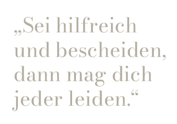 Und für mich ist auch der Satz sehr wichtig: „Es ist besser in Ehren zu versagen, als durch Betrug erfolgreich zu sein.“ Dieses „Leben und leben lassen“ hat uns immer begleitet, und genau das lebe ich heute auch meinen Urenkeln vor.