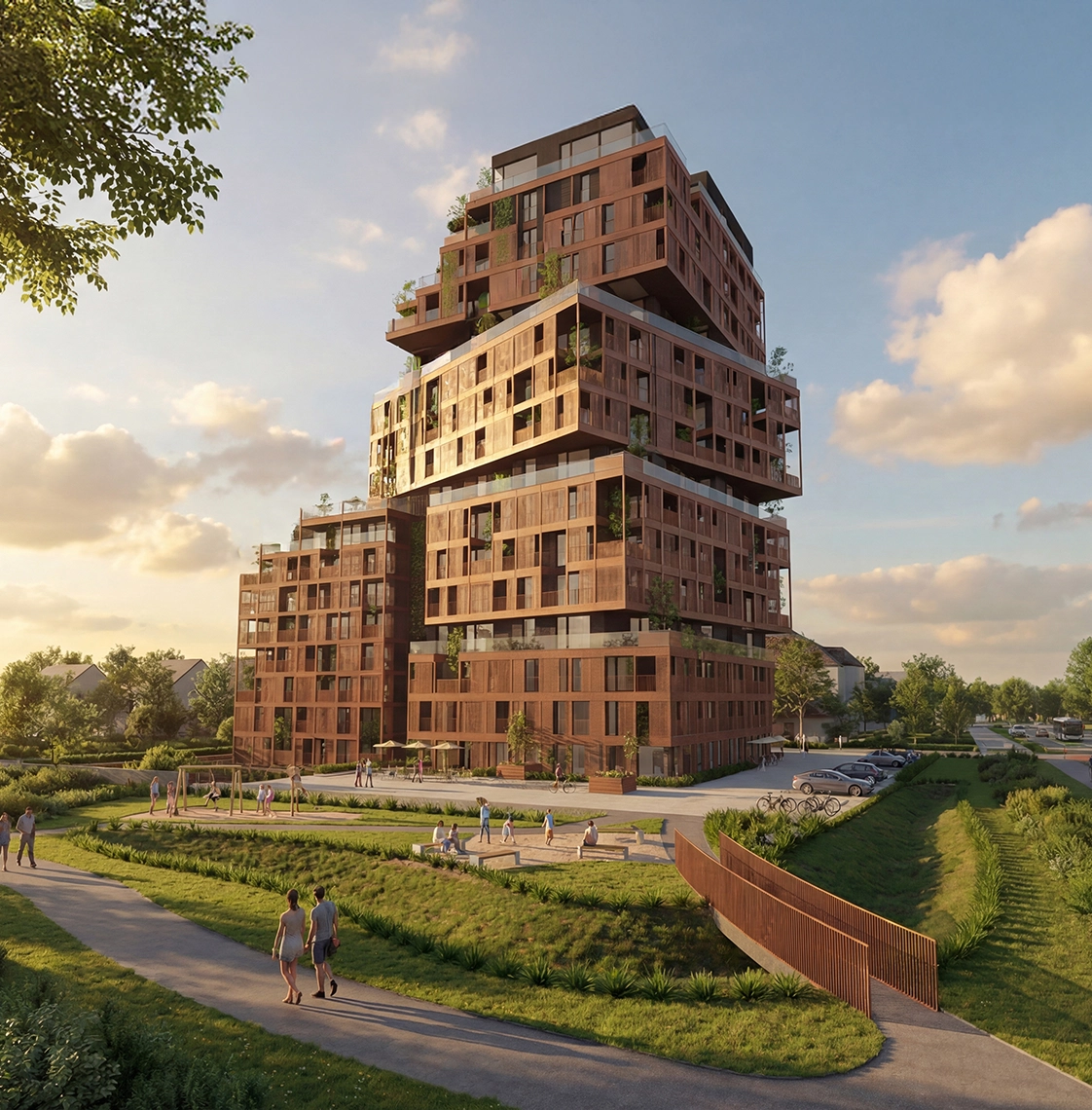 Aus dem massiven Block der „Grobknetmasse“, wie Isil den Entwurf liebevoll nennt, schält sich nun die eigentliche Anatomie dieses Leuchtturms heraus. Ein 15-stöckiges Gebäude, knapp 50 Meter hoch, das nicht nur durch seine raffinierten Verdrehungen besticht, sondern auch eine glasklare Antwort auf die drängendsten Baufragen unserer Zeit liefern soll. Wer heute in diese Dimensionen wächst, steht schnell unter dem Generalverdacht, einen unökologischen Betonklotz in die Landschaft zu setzen. Doch genau hier beginnt die eigentliche Magie von ATEA 2.0.