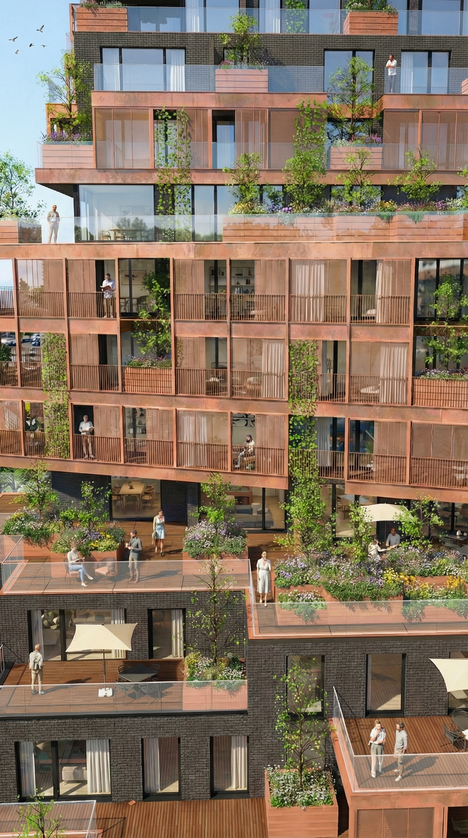 Das heißt, die oftmals zitierten „bunten Bilder“ mit den begrünten Terrassen und vertikalen Gärten sind kein architektonisches Chichi für die Präsentationsmappe, sondern knallharte bauliche Realität?