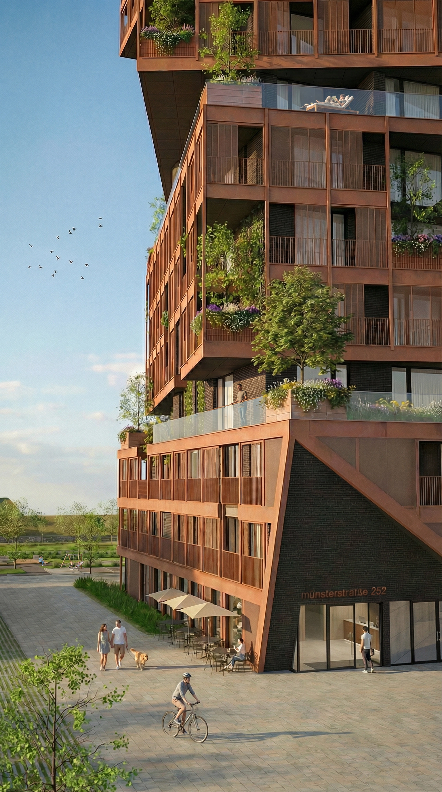 Ein mutiger Ansatz, durch den sich die Toreinfahrt zu Bocholt im Rhythmus der Tageszeiten neu erfinden wird. Doch so spektakulär diese Hülle auch sein mag, das eigentliche Leben spielt sich im Inneren ab. Wer zieht in einen solchen Leuchtturm ein? Wird ATEA 2.0 am Ende ein elitärer Elfenbeinturm für Gutbetuchte, oder hält es sein Versprechen, auch echten, durchmischten Wohnraum für die Mitte der Gesellschaft zu schaffen?