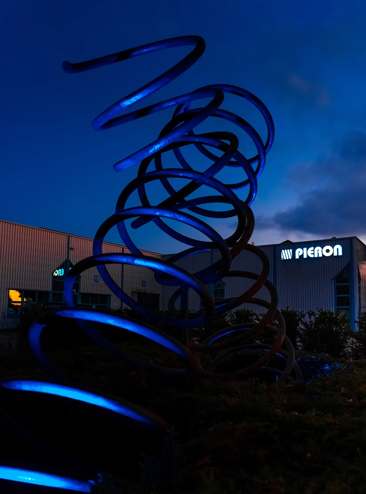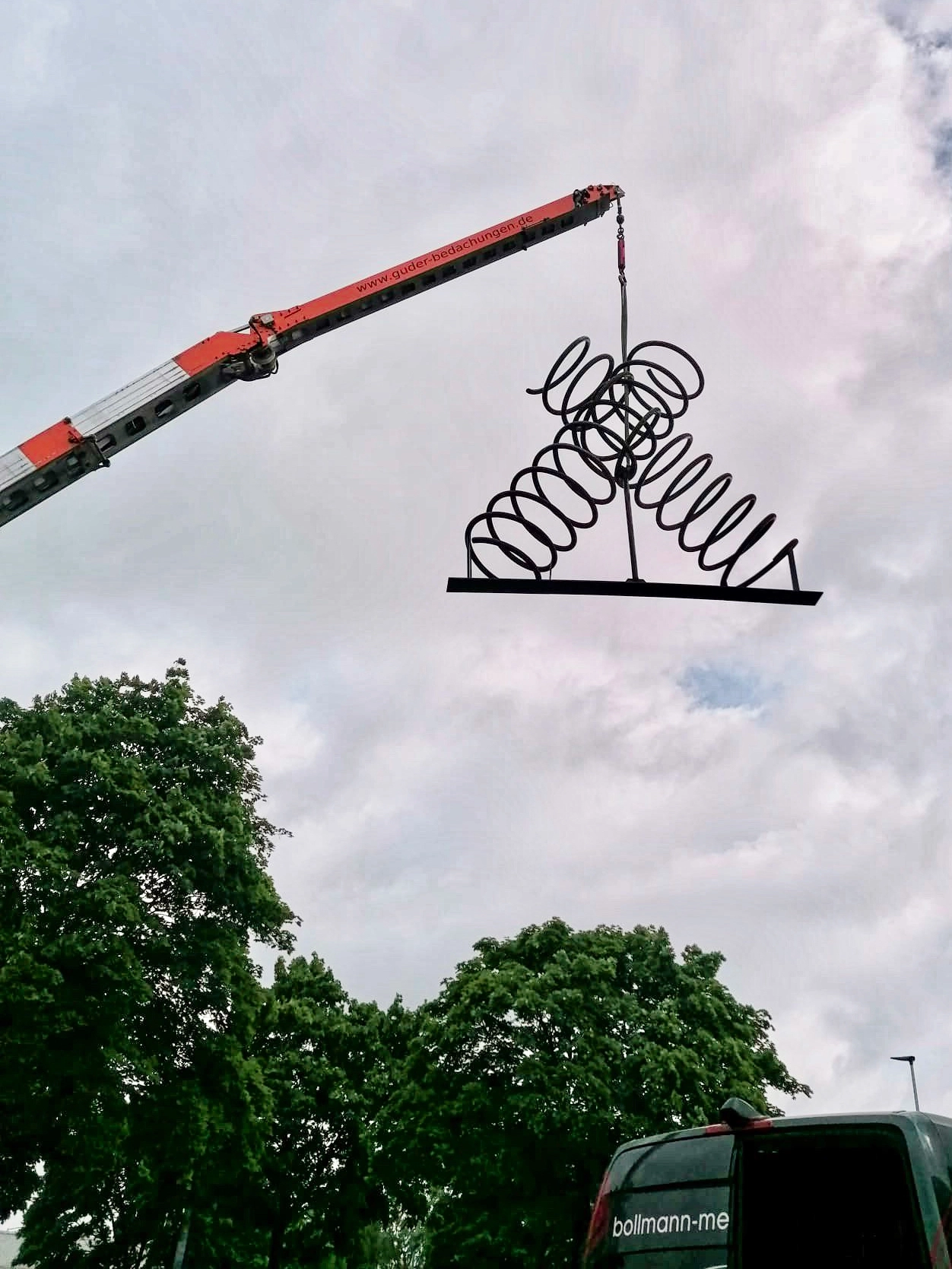 Es geht um technische Details zu den Pieronschen Federn, um eine weitere Skulptur aus der Halderner Ideenschmiede, die Anfang August das Stadtbild von Bocholt veredeln wird … und um die neue LED-Wand beim 1. FC Bocholt, die man am Hünting in Szene gesetzt habe.