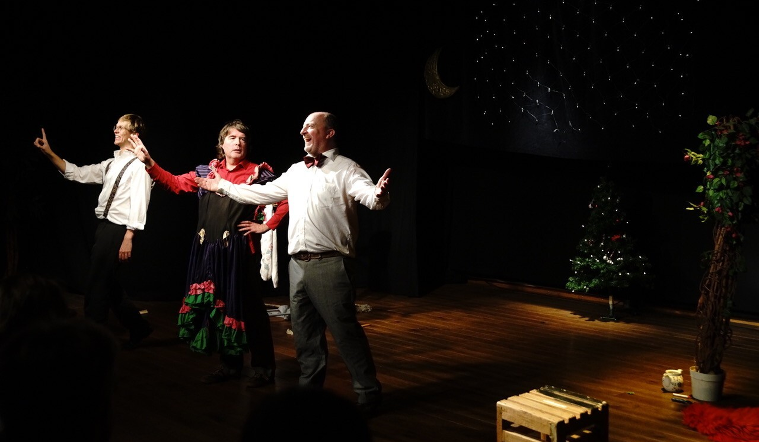 Drei Männer, die es genießen sich erneut auf die Bühne wagen, um dort zum großen Amusement des Publikums zu streiten. Aber sie versöhnen sich auch gerne immer wieder, denn schließlich geht es ja um die einzig wahre Weihnachtsgeschichte. Immer fällt einem der Drei etwas anderes ein, was noch zu erzählen wäre, wobei der Kern der Geschichte unangetastet bleibt. Die ausgelassene Umsetzung, Querverweise und Korrekturen erfreuen das Publikum, denn die Drei sind meisterlich in den Anschlüssen, dem “Timing” und haben selbst unermesslichen Spaß an ihrem Treiben.