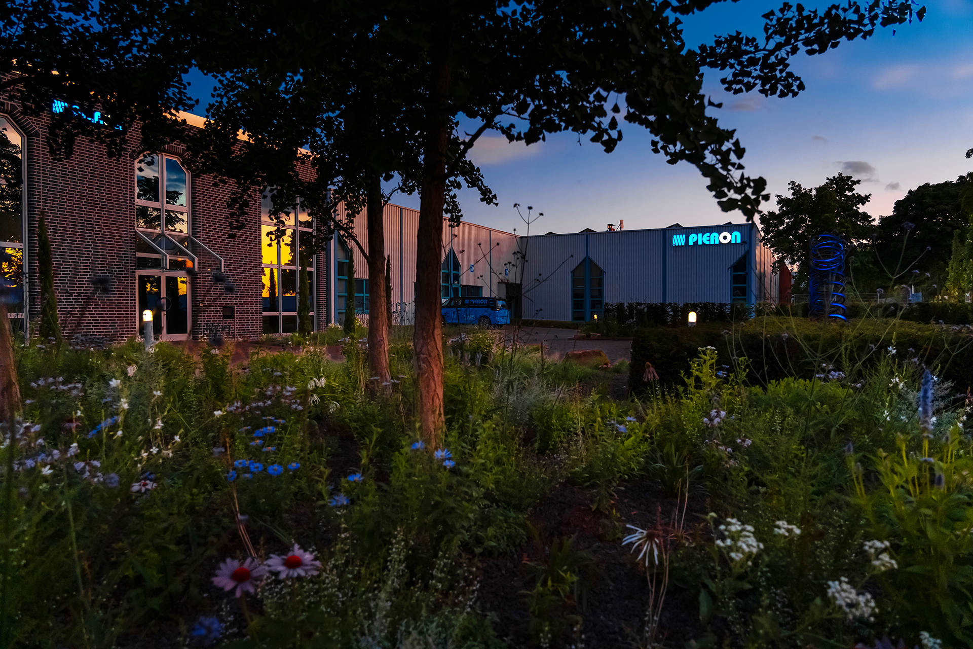 Im Zusammenhang mit der 100-Jahre-Pieron-Story fielen uns die neu gestalteten Außenanlagen des Unternehmens im Industriegebiet Schlavenhorst ins Auge – im Zentrum eine Skulptur in Form von zwei Druckfedern, wie uns der geschäftsführende Gesellschafter Sven Pieron erklärt. Eine gemeinsam mit dem Unternehmen Grandiflora entwickelte Idee, die mit der Aufhübschung des Eingangsbereichs betraut wurde. Eine Feder, die in weitaus kleineren Dimensionen heute noch von Pieron gefertigt wird … die in der Automobilindustrie und vielen anderen Bereichen eingesetzt wird. Diese Skulptur erinnert an die Wurzeln des Unternehmens. Ein willkommener Anlass, mit den Geschäftsführern Johannes Telaar & David Zimmermann von GRANDIFLORA ins Gespräch zu kommen: