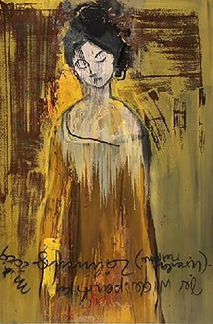 Wenn ich von unserem Bett aus in den Flur schaue, blicke ich auf ein Gemälde von Armin Mueller-Stahl. Das Werk heißt „Der Widerspenstigen Zähmung“ … der Titel steht über Kopf auf das 120 x 150 cm große Bild geschrieben. Abgebildet ist Ursula Meißner – eine deutsche Schauspielerin, die in vielen Shakespeare-Stücken überzeugt hat … unter anderem in dessen „Der Widerspenstigen Zähmung“. Ursula und Armin lernten sich an Theatern in Berlin kennen, von wo aus Armin Mueller-Stahl in den Siebzigern seine Schauspielkarriere startete.
