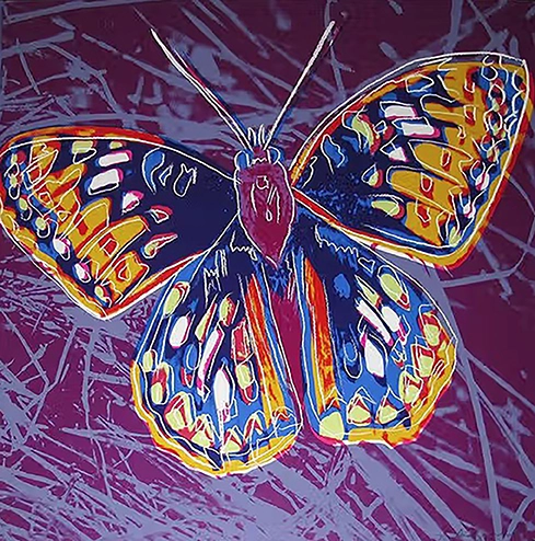 Das war ein Siebdruck von Andy Warhol, das Motiv heißt „San Francisco Silverspot“. Schwer vorstellbar, dass der Druck eines Schmetterlings für etwas mehr als 100.000 Euro gehandelt wird, oder? Es stammt aus der Serie „Endangered Species“ (1983), mit der Warhol auf den Schutz bedrohter Tierarten aufmerksam machte.
