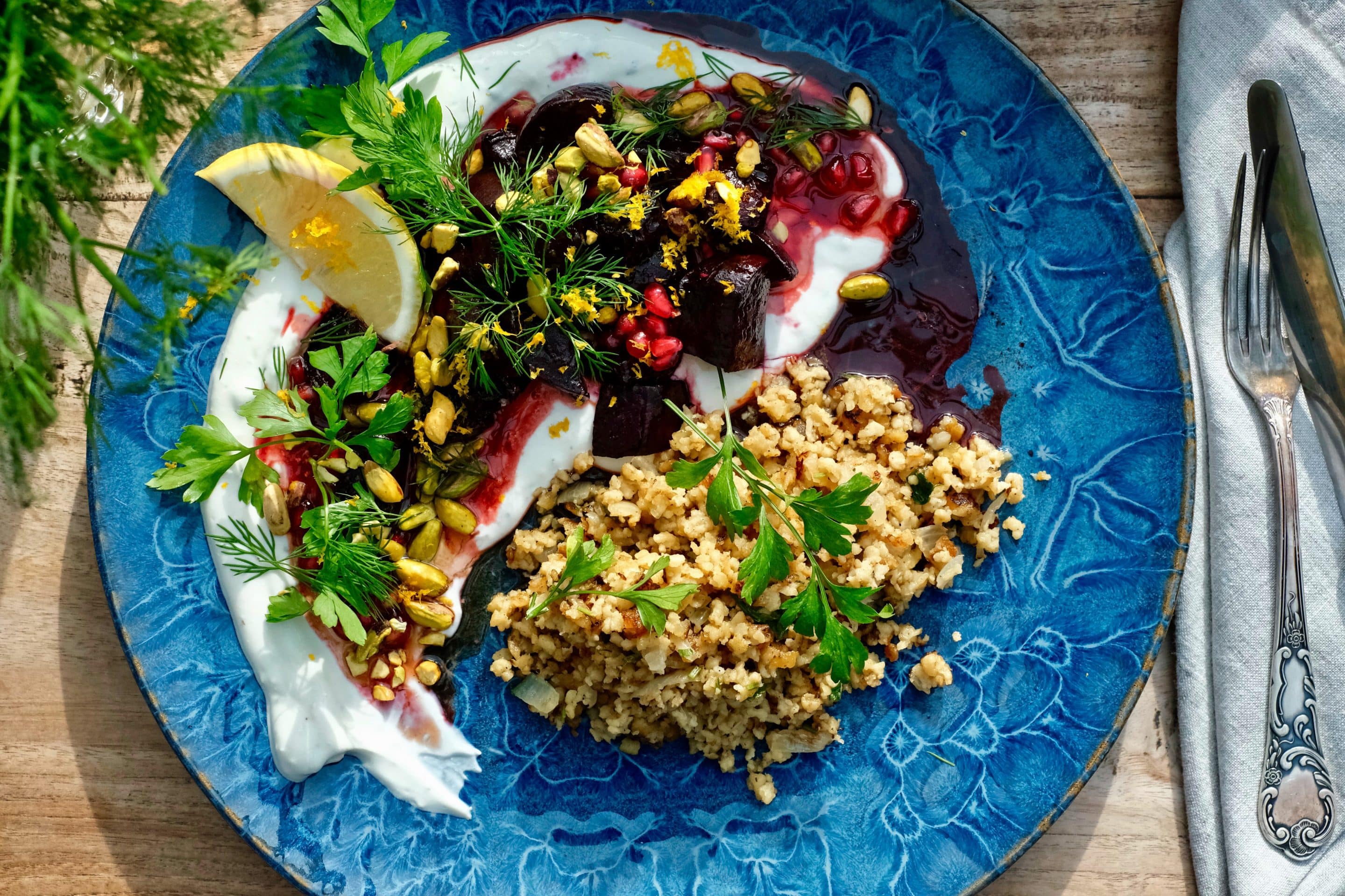 Dem Original-Rezept aus dem Englischen entnahm ich als Zutaten: Rote Bete | Joghurt mit Feta | Pistazien und Dill.
