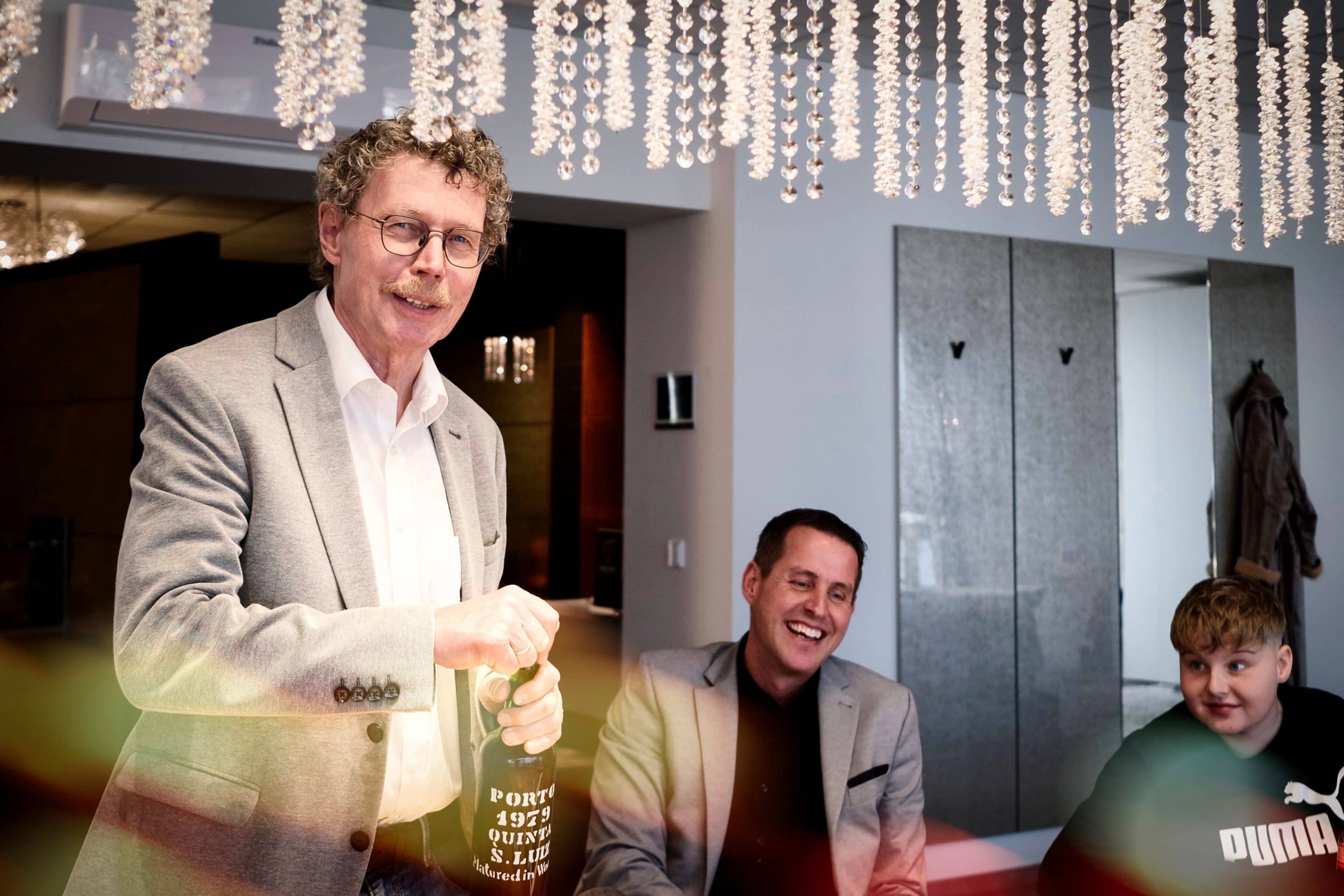 Während ich das feine Hack aus der Rinderhüfte mit den Zutaten vermähle, macht sich Klemens an das Entkorken eines Portweins aus dem Jahre 1979. Überraschend schnell hatte Kirsten die Family-Fotos im Kasten – offensichtlich dadurch begründet, dass die Aufforderung „Bitte lächeln und fröhlich sein“ bei dieser natursympathischen Familie entbehrlich ist. Während Kirsten die übrigen Familienmitglieder, die unsere Runde bereicherten, ebenfalls fototechnisch in Szene setzte, machte sich Senior Klemens ans Einschenken des 79ers. Ein echt feiner Tropfen aus dem Jahrgang, als Christian, der älteste Sprössling von Elisabeth & Klemens Elsenbusch, das Licht der Welt erblickte. Diese Flasche hatten wir dem Fundus unserer eigenen Portwein-Raritäten entnommen.
