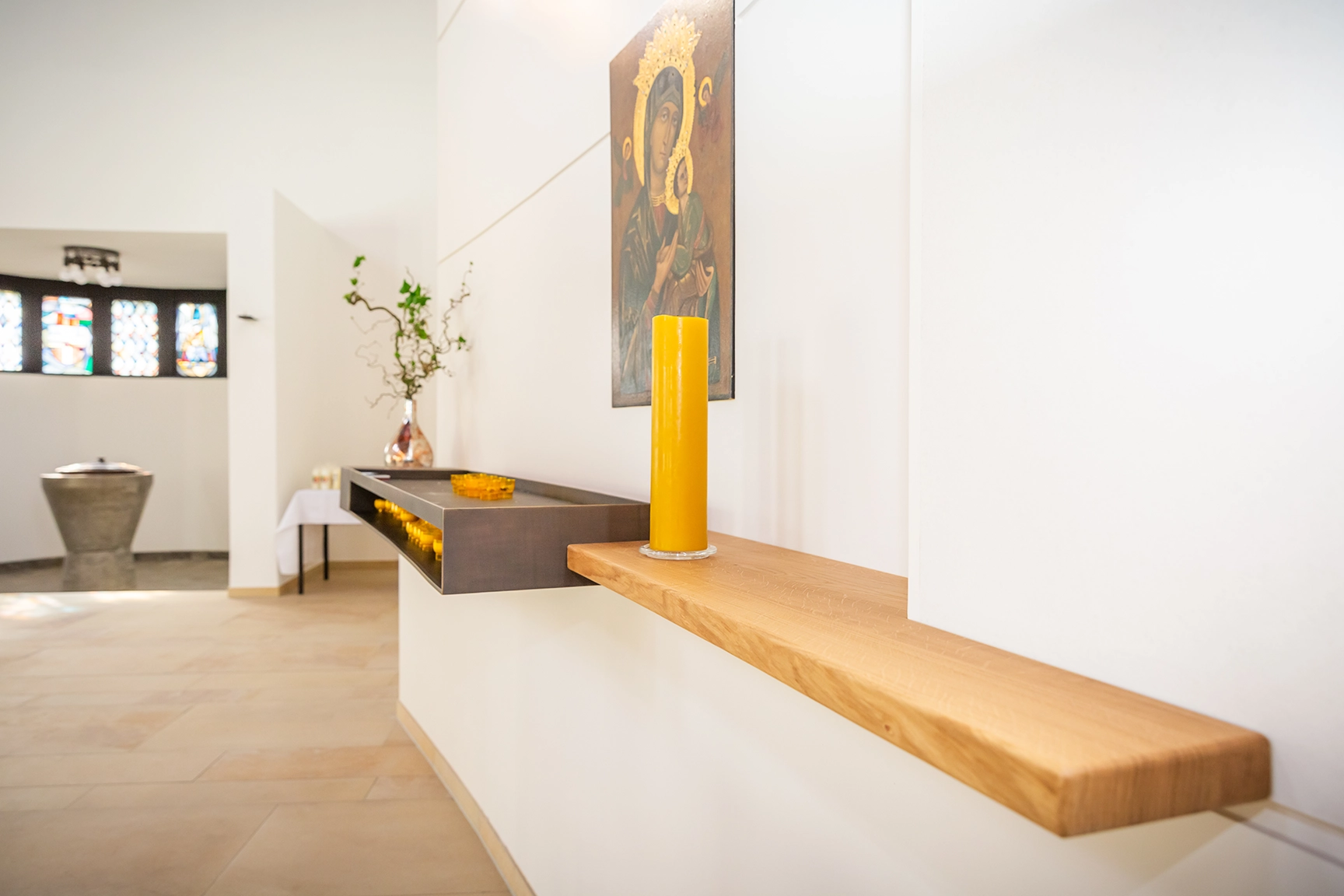 Eines unserer Vorzeige-Projekte ist sicherlich die Möblierung einer Kirche in Duisburg-Walsum, im Rahmen einer Kernsanierung. Das Projekt lief über mehrere Jahre – inkl. Photovoltaikanlage, Fußbodenheizung und schließlich mit unseren Einbaumöbeln. Der Auftrag kam über die Architektin Birgit Segerath aus Dinslaken.