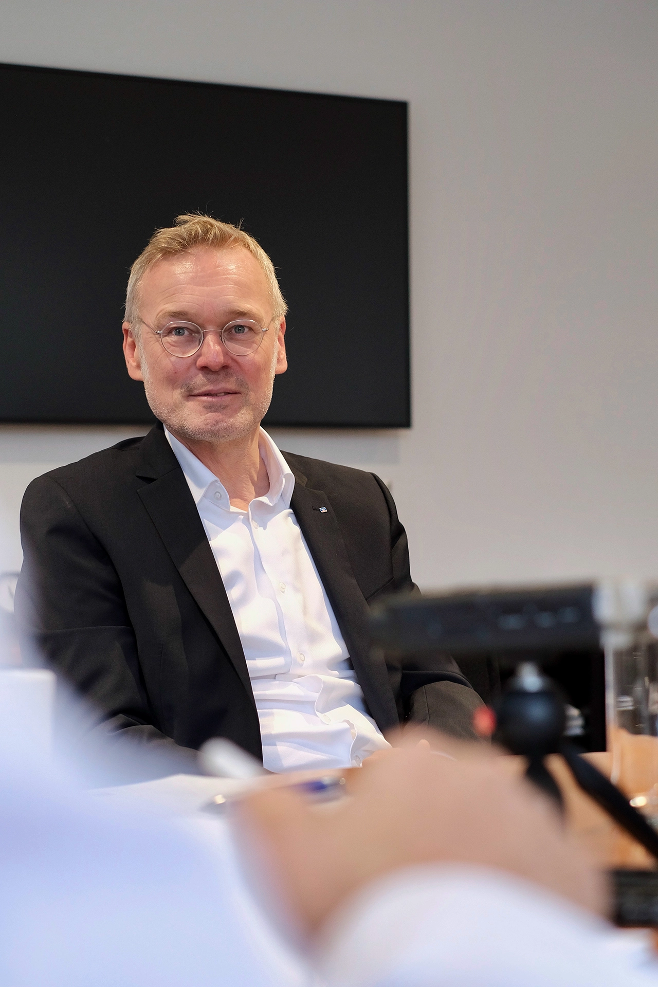 Der erste Schluck Kaffee … Uhrenvergleich: „Wann drängt der nächste Termin?“ und „Bleiben wir beim vertrauten Du?“ – die Koordinaten für ein smart-entspanntes Interview sind einvernehmlich gesetzt.