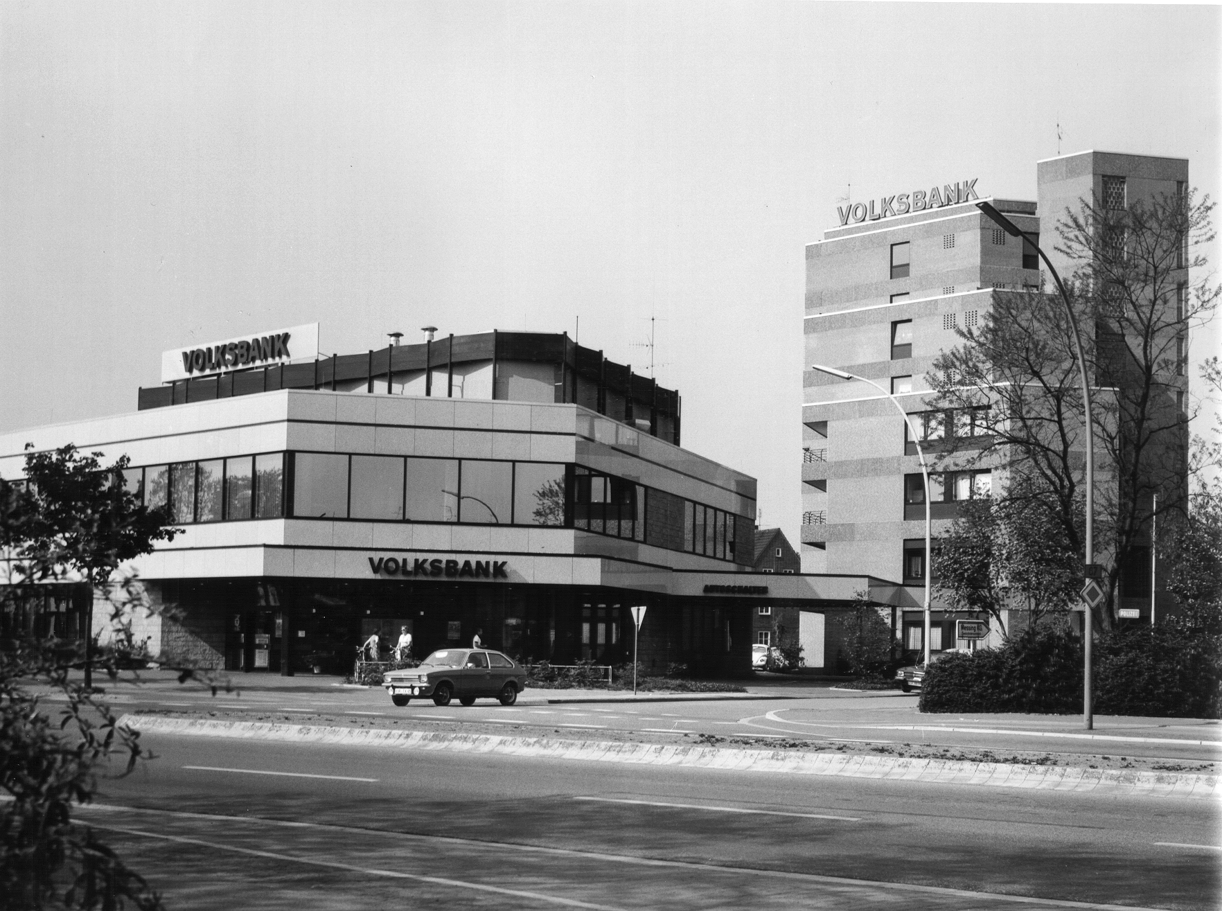 Franz-Josef Heidermann: Da könnten die Altgedienten sicherlich aus den Vollen schöpfen. Was mir vom Erzählen her immer noch ein Schmunzeln abringt, ist, dass es 1975 hier an der Hauptstelle einen Drive-in … einen Autoschalter gab. Ein deutschlandweites Novum.